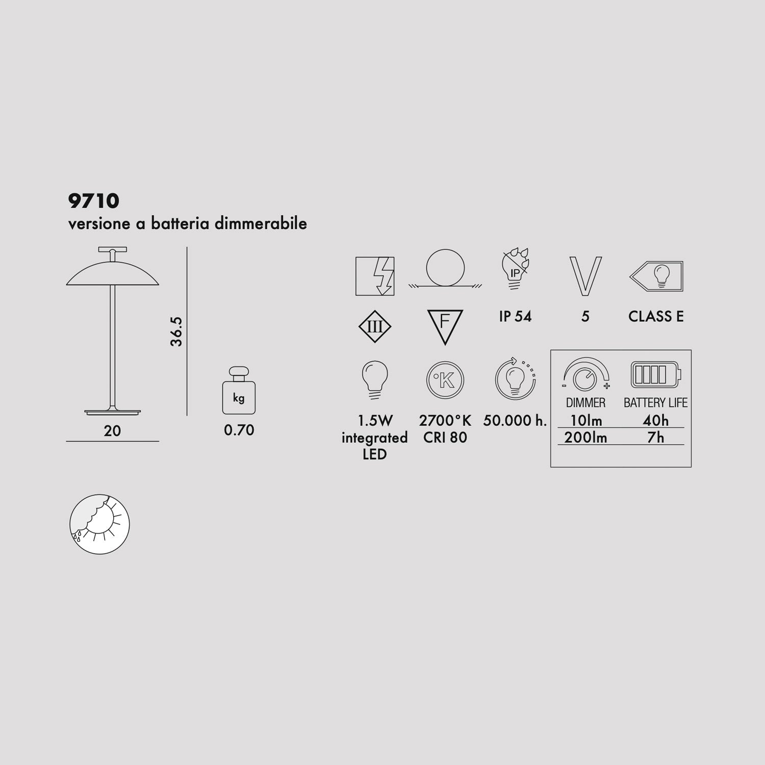 MINI GEEN-A - in white, black, green, burgundy and bronze - reinvents the reading lamp with the battery-operated and corded table version and maintains clean lines and increases its portability and opportunities for use. Can also be used outdoors.