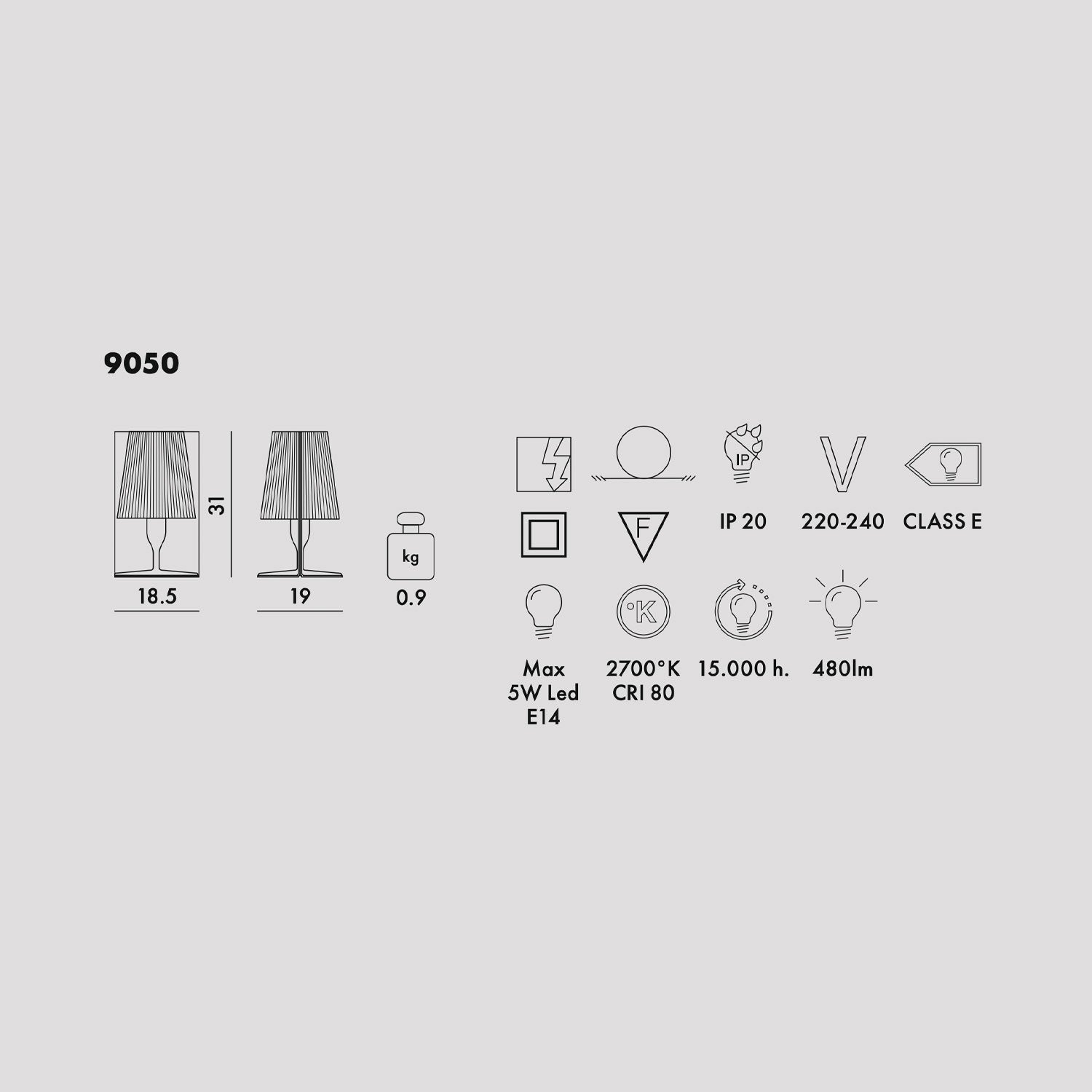 - Power: max 5W LED E14.
