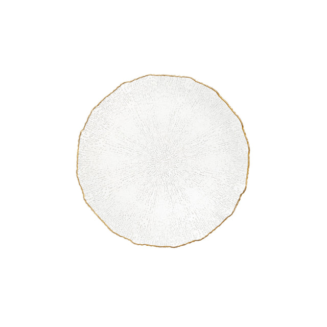 Il piatto da portata rotondo Maestà di La Porcellana Bianca, con un diametro di 33 cm, è una vera opera d'arte in vetro. I suoi eleganti bordi frastagliati impreziositi da un raffinato filo oro aggiungono un tocco di lusso e raffinatezza a ogni tavola.