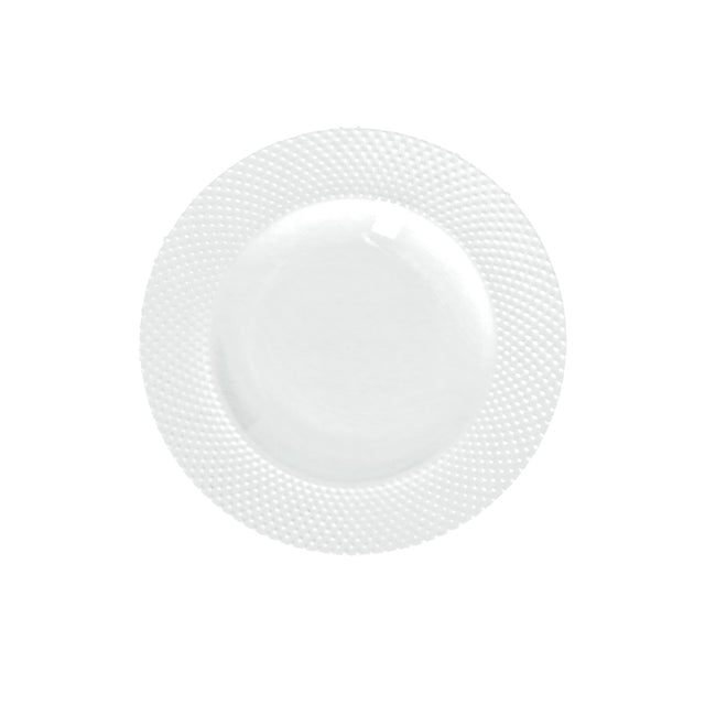 The passepartout color par excellence - white - combines with a very delicate relief decoration. A dotted motif that adorns each product in the collection with indescribable grace. For a table capable of recalling beauty in every season. Set consisting of 6 plates.