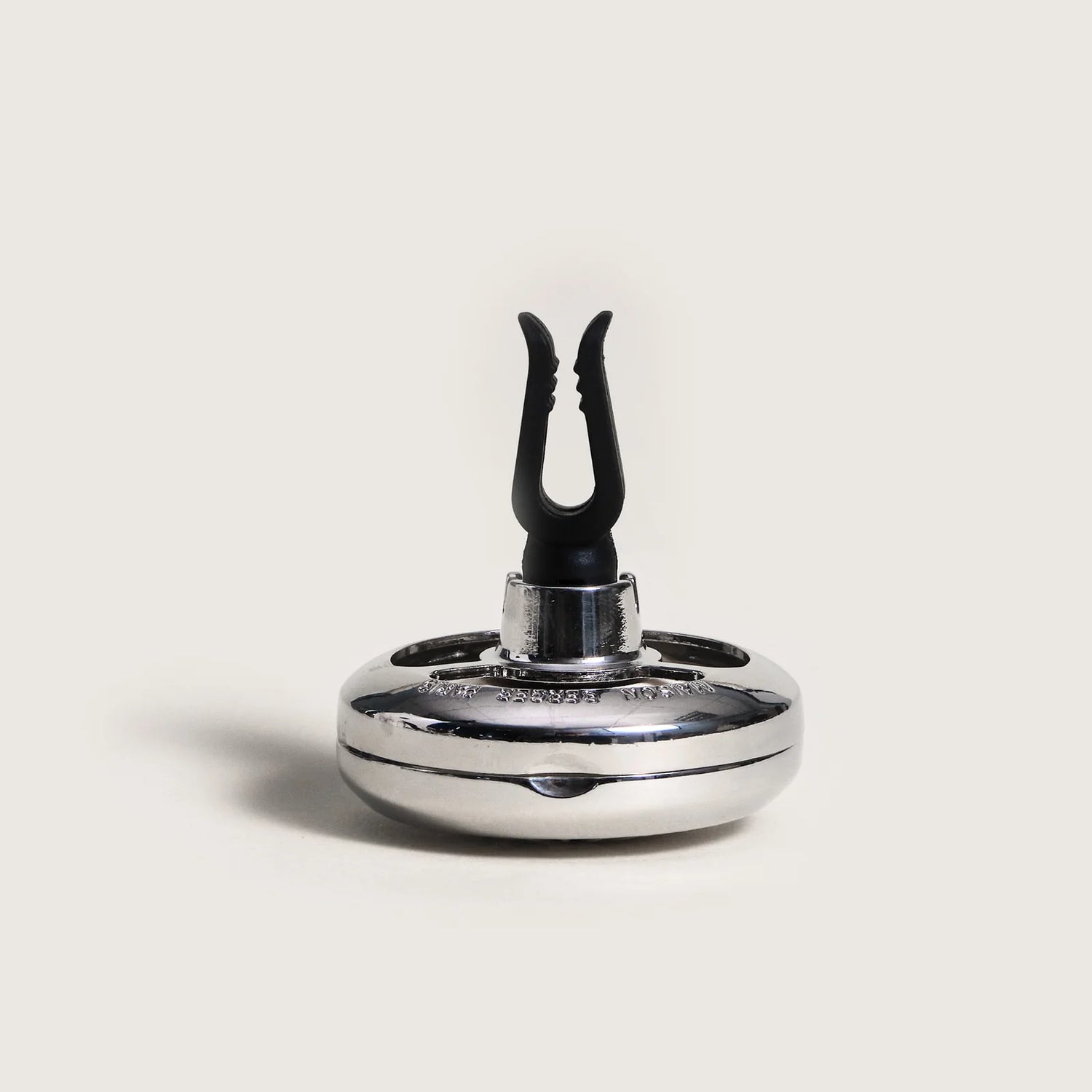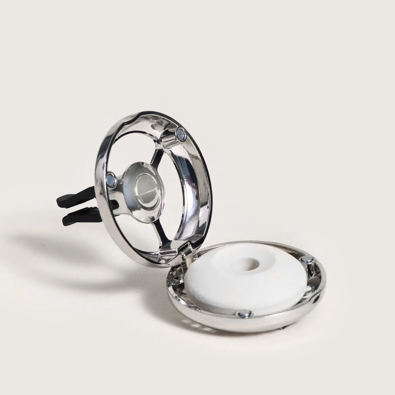 The Angélique Noire Illusion car diffuser turns every journey into a luxurious scented holiday. Designed with an elegant silver finish, this speaker blends seamlessly with your vehicle's interior, adding a touch of sophistication. The Angélique Noire perfume promises an immersion in a world of sensuality and mystery. The bright top notes open with bergamot, leading towards an opulent floral heart of black angelica, iris and tuberose to finish with a deeply woody and vanilla base, creating a rich and captivating ambience.