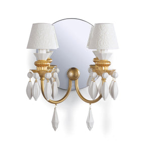 LLADRO' Applique Belle De Nuit 2 Luci Lustro Oro 34x27cm Porcellana