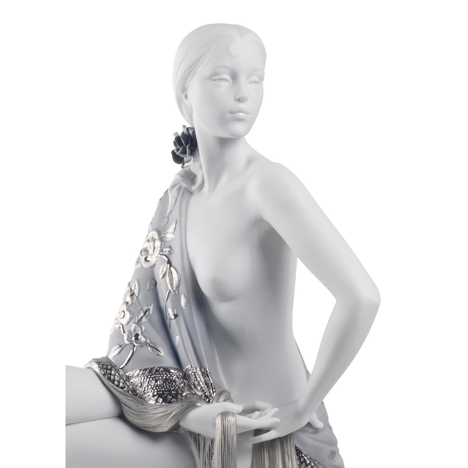 LLADRO' - Porcelain statue figure Nude Woman with shawl. Silver luster is backordered and will ship as soon as it is back in stock.