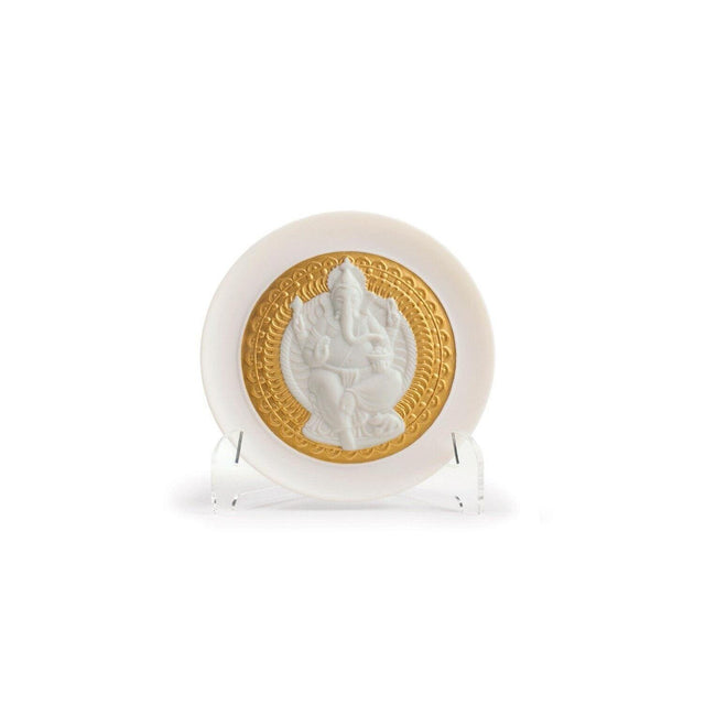 LLADRO' Piatto Decorativo Lord Ganesha Lustro Oro 10x10cm Porcellana