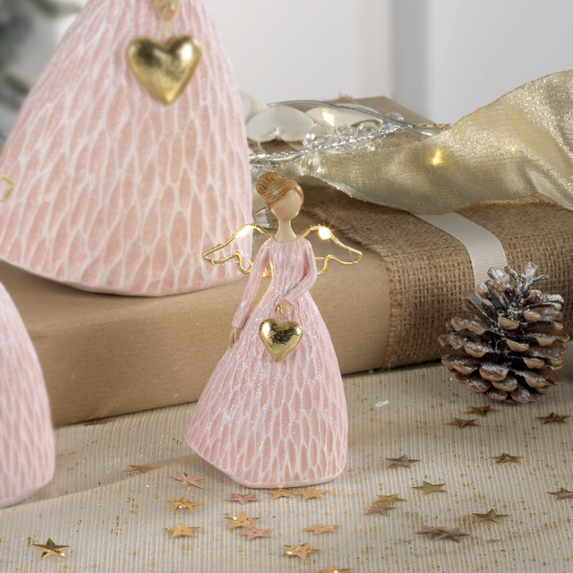 MASCAGNI CASA Christmas Angel with LED Christmas Decoration 12cm Pink Resin