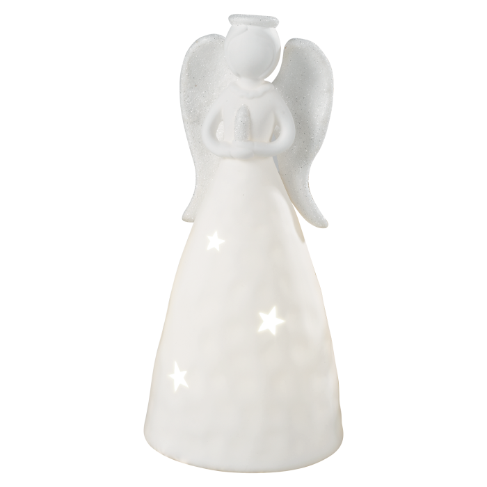 MASCAGNI CASA Christmas Angel with LED Christmas Decoration 24cm Ceramic White