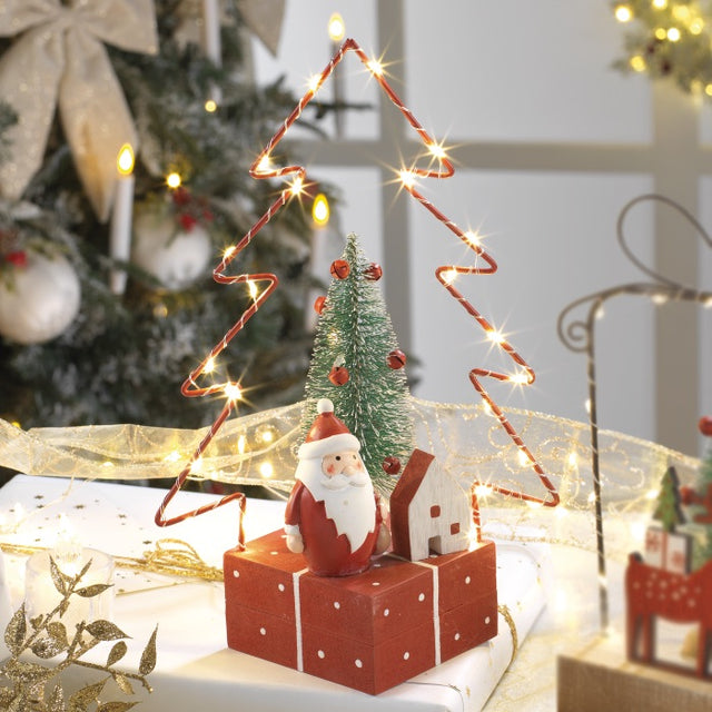 MASCAGNI CASA Babbo Natale in Resina con Abete LED 26x17cm Rosso Decorazione Natalizia