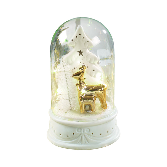 MASCAGNI CASA - Deer with Bell LED Christmas Decoration White Gold 20 cm Glass