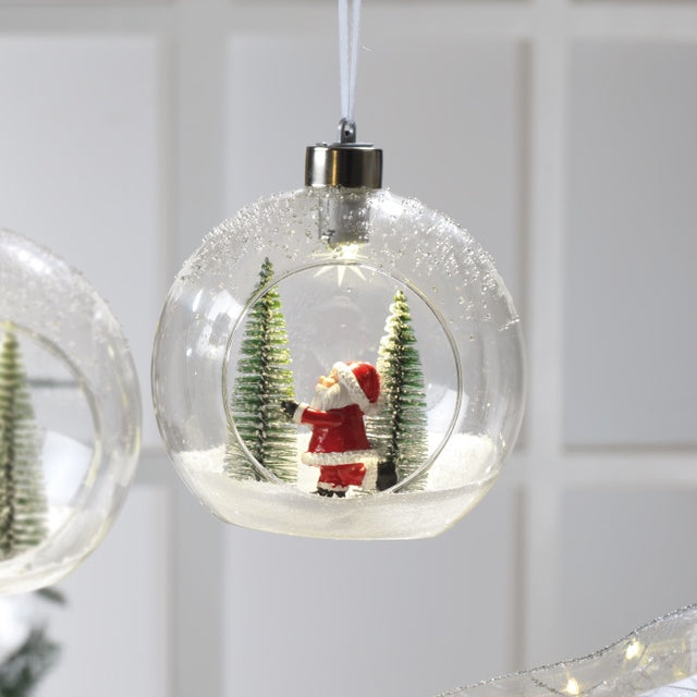 MASCAGNI CASA Pallina per Albero di Natale con Babbo Natale LED 12cm Vetro Decorazione Natalizia