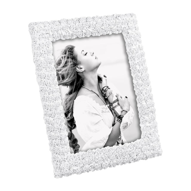 MASCAGNI CASA Portafoto Cornice con Roselline 13x18cm Bianco Resina