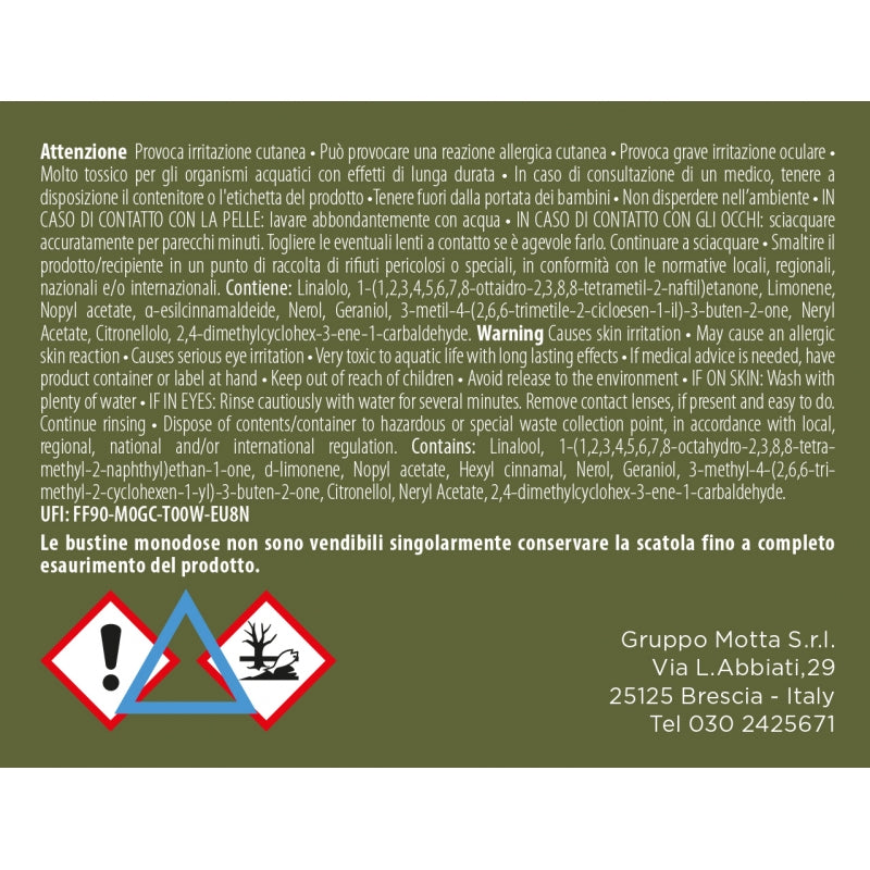 How to use: open the sachet, spill the contents on the floor and vacuum it up with a vacuum cleaner, you will feel an intense and pleasant scent in the air. Every time you replace or empty the dust bag, you must repeat the previous operation. The contents of the sachet are active for approximately 4/5 weeks.