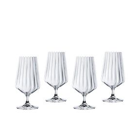 The beer glass is perfect for revealing color, developing aroma and lengthening the palate of beers. This tulip-shaped glass captures the full range of aromas, dissipates excess carbonation and helps maintain the beer's foam. Discover the luxury of everyday life with NACHTMANN's Celebration collection. Beer and gin & tonic glasses, made with blown vertical contour lines, transform any gathering into a celebration. The unique design highlights your drinks, creating a harmonious aesthetic experience for foodies and enthusiasts. This product is machine made. This item is dishwasher safe. This package contains 4 pieces.