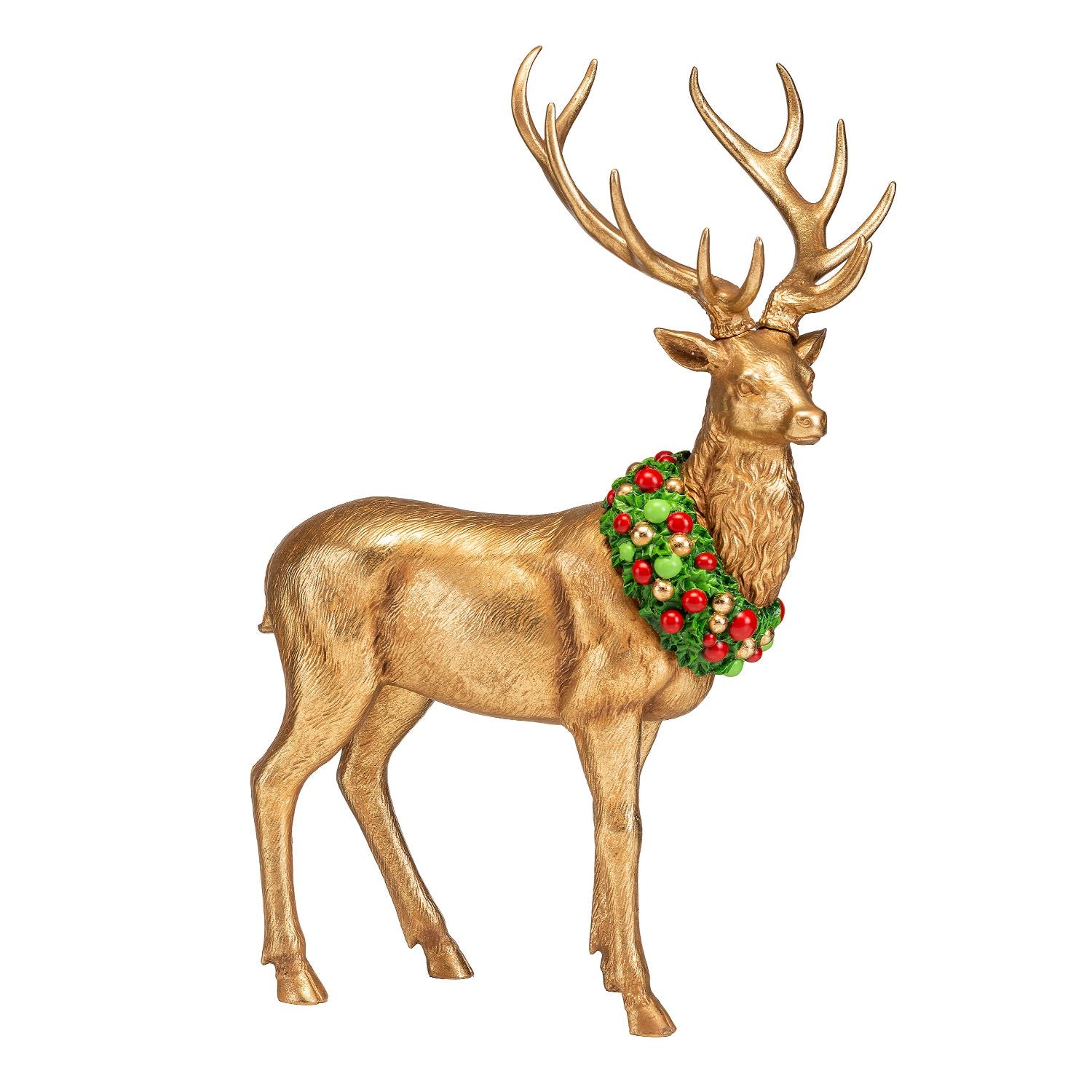 NOEL by Lamart Standing Reindeer Figure in Resin 63cm Gold Christmas Decoration