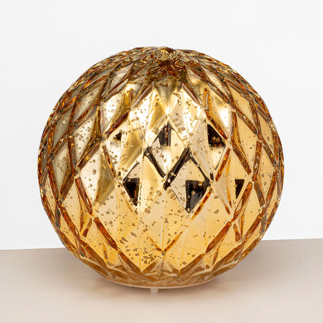 Porta l'eleganza delle festività nella tua casa con la sfera natalizia Noel by Lamart. Realizzata in raffinato vetro colore oro e arricchita da un motivo a rombi in rilievo, questa decorazione da 14 cm di diametro incanta con la sua luminosità interna a LED.
