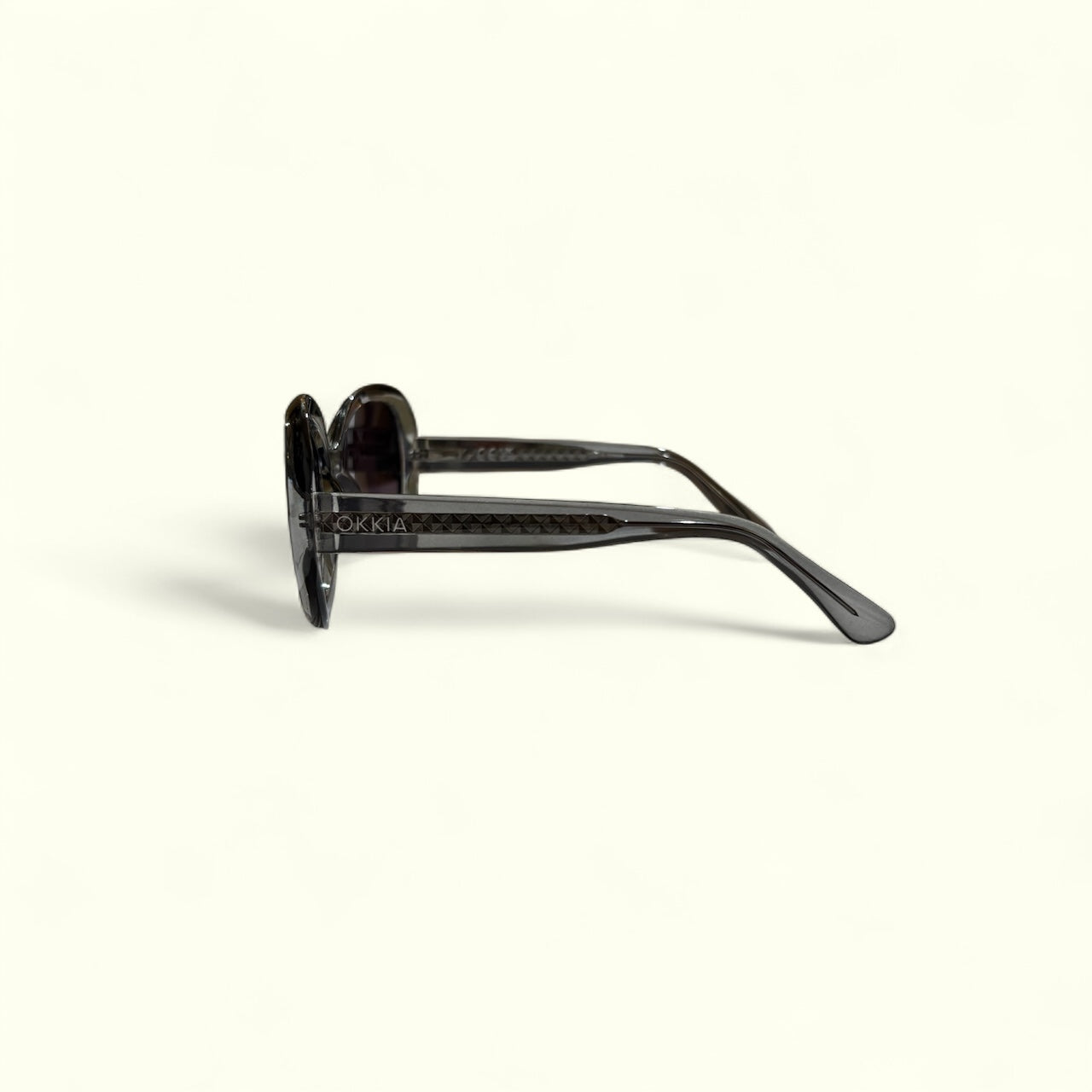 Gli occhiali da sole Okkia modello Miami grigio fumo uniscono un’estetica decisa e sofisticata grazie alla montatura trasparente dalle sfumature scure, che dona profondità e carattere senza appesantire lo sguardo.