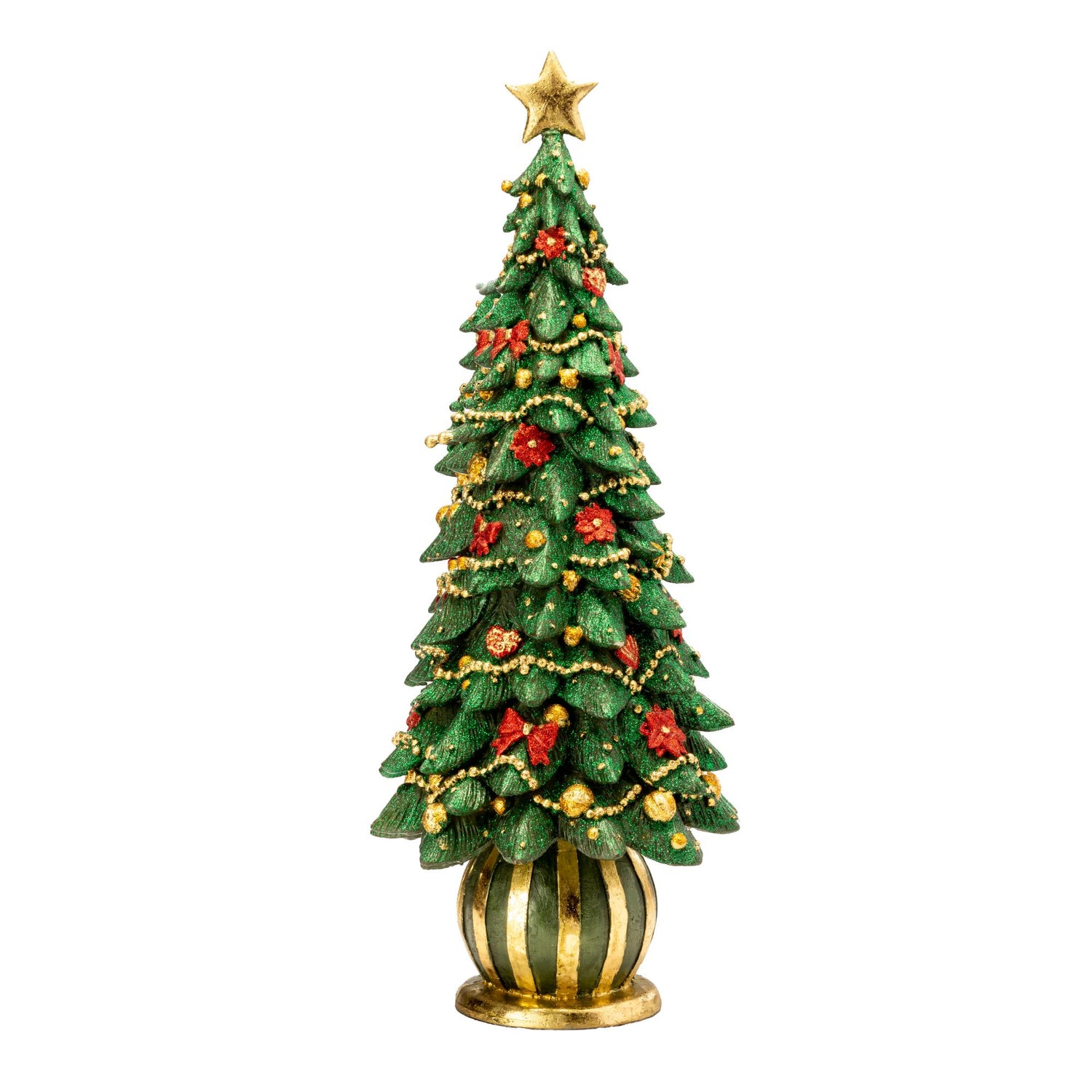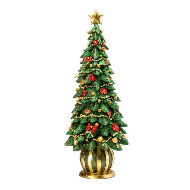 Le finiture dettagliate e l'attenzione ai particolari fanno di questo albero un pezzo elegante e versatile, ideale per abbellire tavoli, mensole o piccoli angoli. Perfetto per chi desidera un elemento decorativo compatto ma d'effetto, questo albero racchiude l'essenza del Natale con un tocco di tradizione e fascino senza tempo.