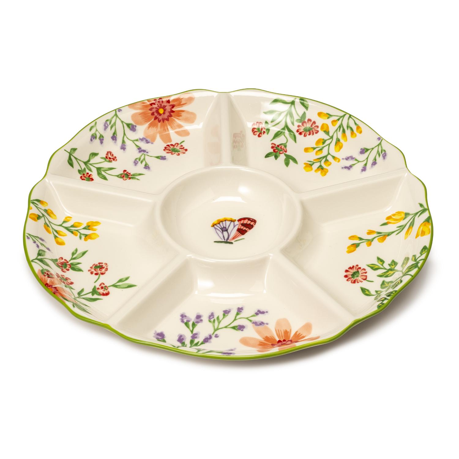 L'antipastiera Bouquet di Palais Royal è la fusione perfetta tra raffinatezza e funzionalità. Con un diametro di 38 cm e sei scomparti, è ideale per servire antipasti, stuzzichini e dolci con uno stile unico.