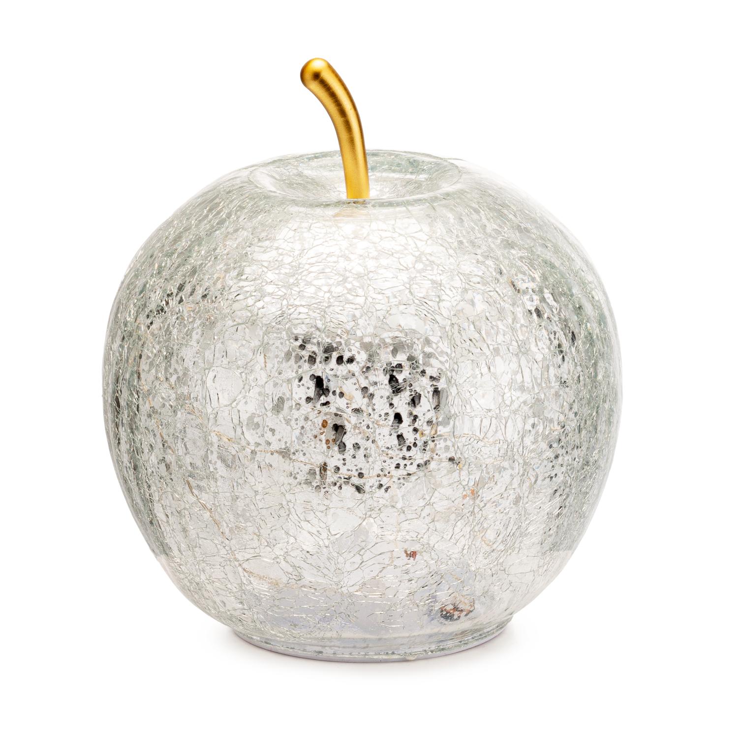 PALAIS ROYAL Mela Argento con LED Decorazione Natalizia 16x17cm Vetro