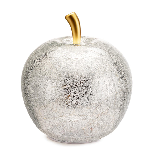 Il design elegante della mela argentata si combina con il classico rosso natalizio, un'aggiunta sofisticata per il tuo albero di Natale, per creare un centrotavola luminoso o per arricchire qualsiasi angolo della casa. I dettagli in argento brillante riflettono la luce, moltiplicando l'effetto scintillante.