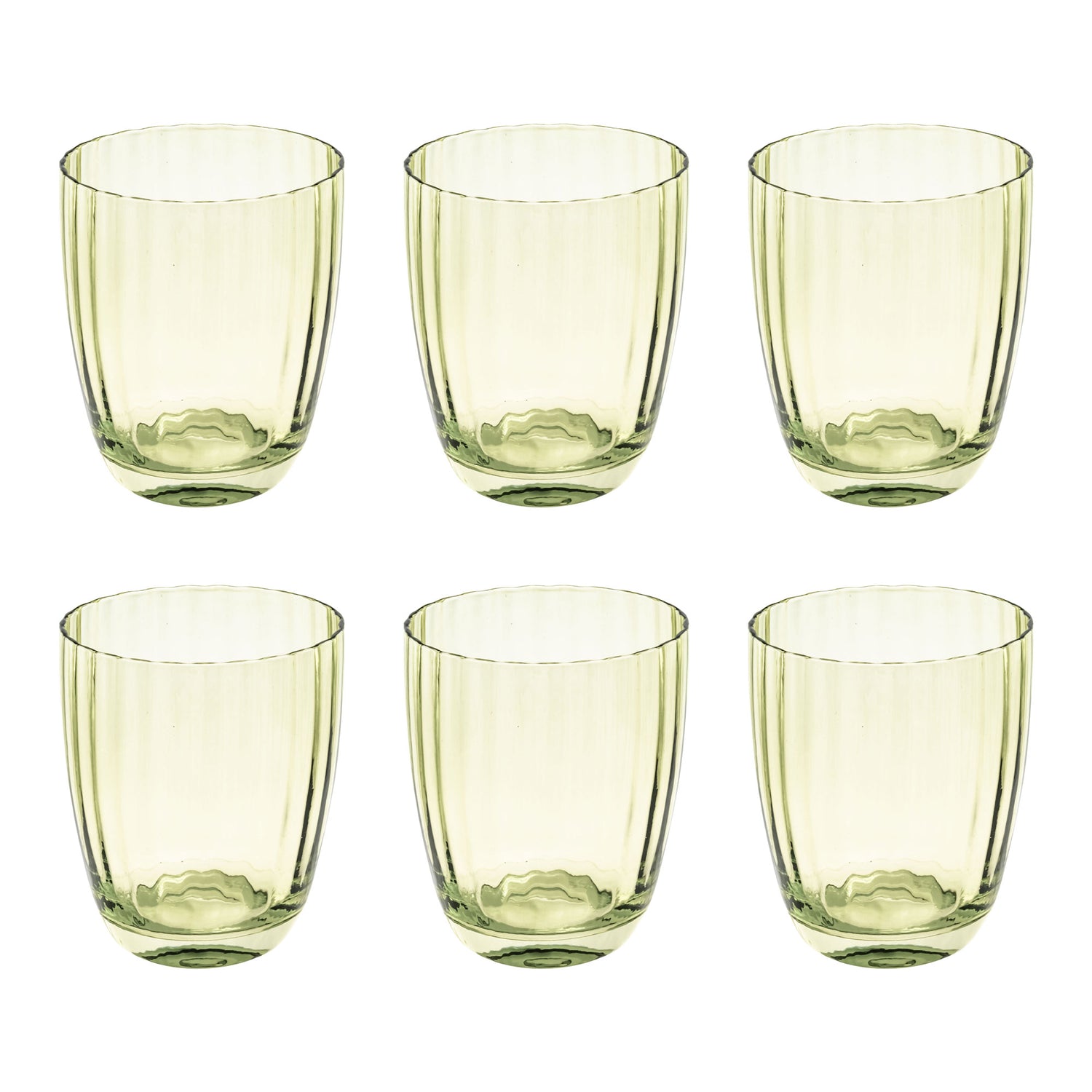 ROSE & TULIPANI Prismia Bicchiere Acqua Set 6 Pezzi 310ml Verde Pasta di Vetro