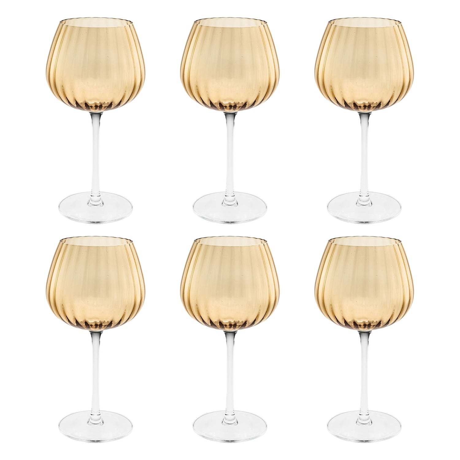 ROSE & TULIPANI Prismia Calici Universali Set 6 Pezzi 460ml Ambra Vetro Soffiato e Pasta