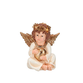 TIMSTOR Angelo Seduto con Cuore con LED 19,5cm Bianco e Oro Decorazione Natalizia