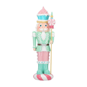 Porta un tocco di dolcezza e magia nelle tue festività con lo schiaccianoci di Natale di Timstor, alto 35,5 cm! Questo affascinante pezzo, dai delicati toni pastello, è arricchito da dettagli che richiamano i dolci natalizi, creando un'atmosfera festiva e giocosa.
