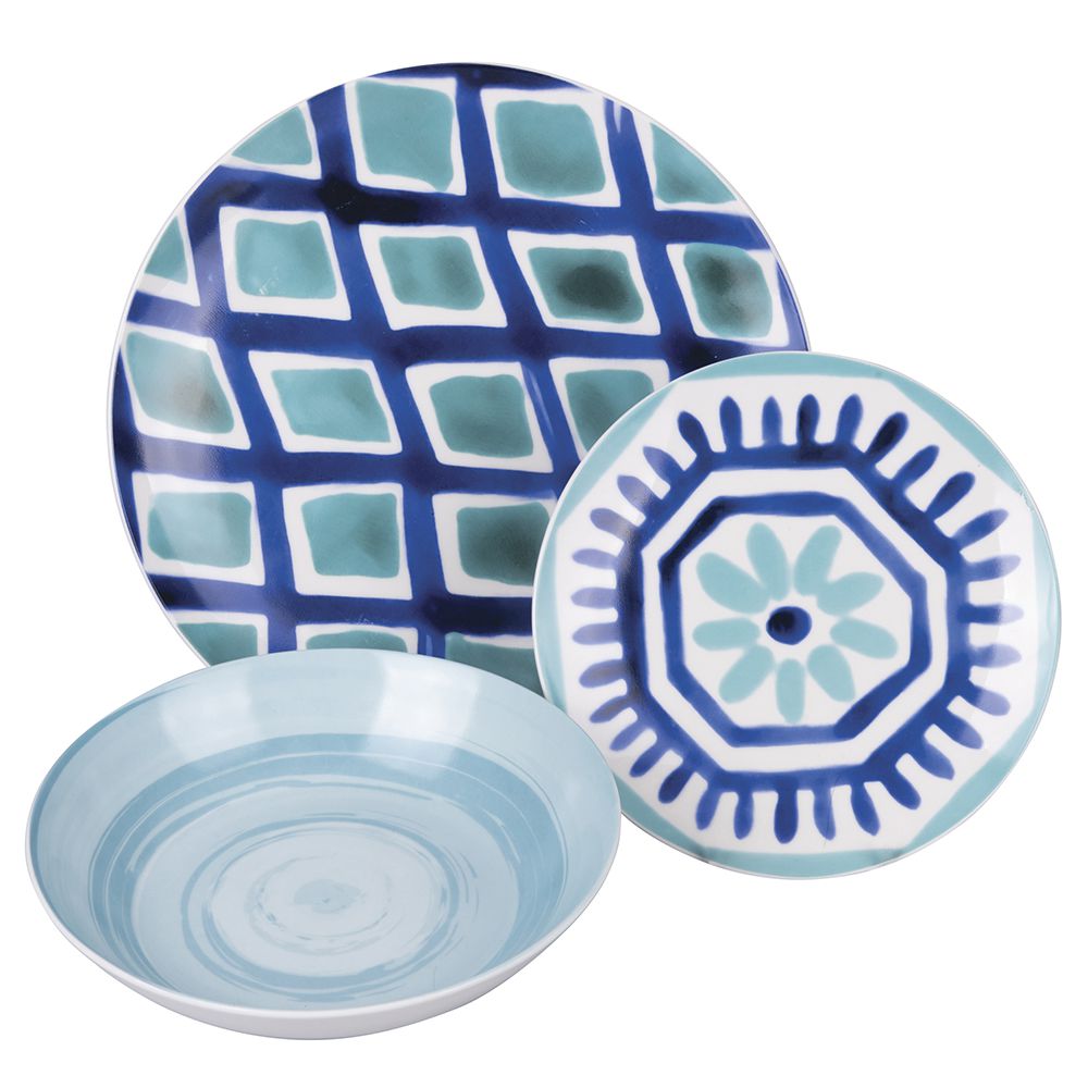 Rendi ogni pasto speciale con il servizio da tavola Aquazul di Villa d'Este Home Tivoli. Composto da 18 pezzi in porcellana di alta qualità, questo set dai toni del blu è perfetto per 6 persone e include piatti piani, piatti fondi e piatti da dessert.