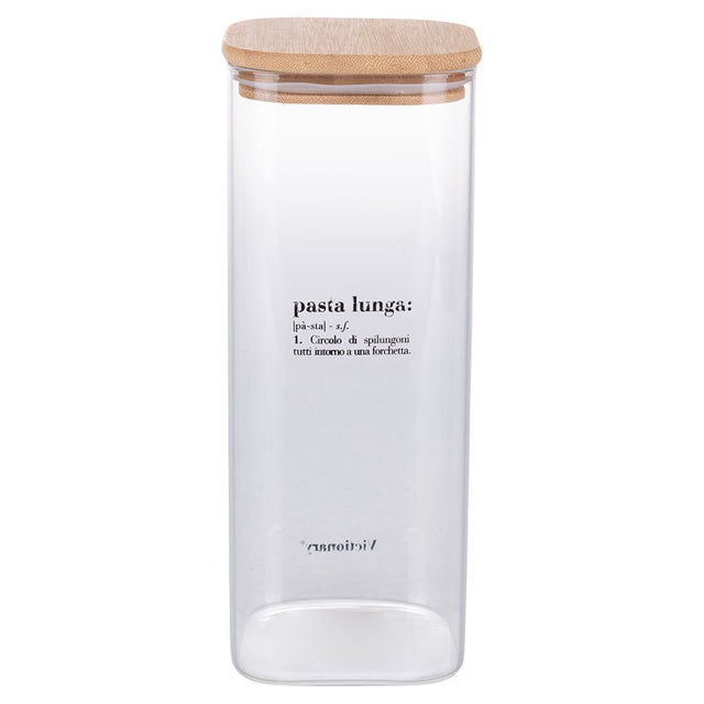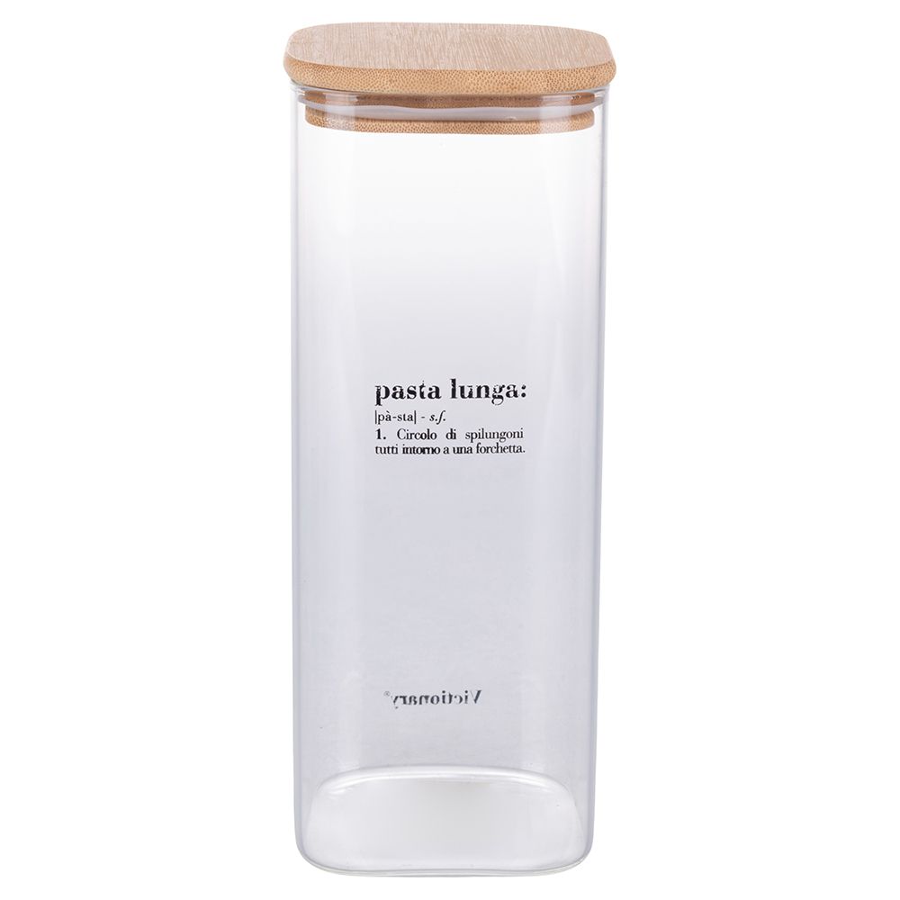Rinnova la tua dispensa con il barattolo per pasta lunga Victionary di Villad’Este Home Tivoli, un contenitore elegante che unisce la trasparenza del vetro spesso all’equilibrio naturale del coperchio in bambù. Grazie alla guarnizione in silicone, mantiene la tua pasta fresca e croccante, mentre il design minimal con la scritta "Pasta" dona un tocco contemporaneo e ironico alla cucina.