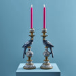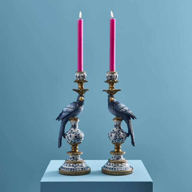 WERNS Candelabro Portacandele Pappagalli Set 2 Pezzi 39,5cm Blu Poliresina e Metallo