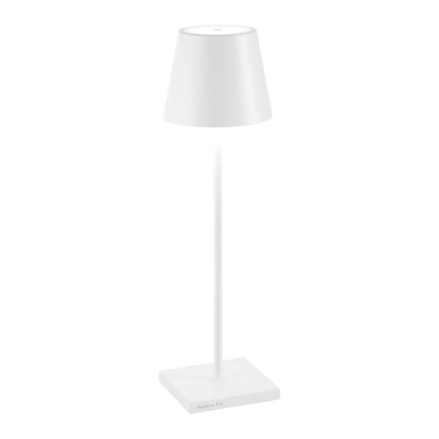 ZAFFERANO Poldina PRO Lampada da Tavolo 38cm LED Ricaricabile Senza Fili Bianco Alluminio