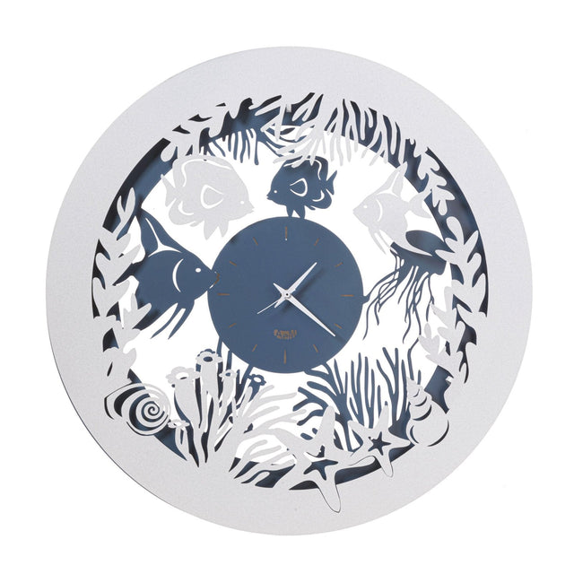 ARTI & MESTIERI Orologio da Parete di Design con Pesciolini Nettuno Azzurro E Bianco Marmo