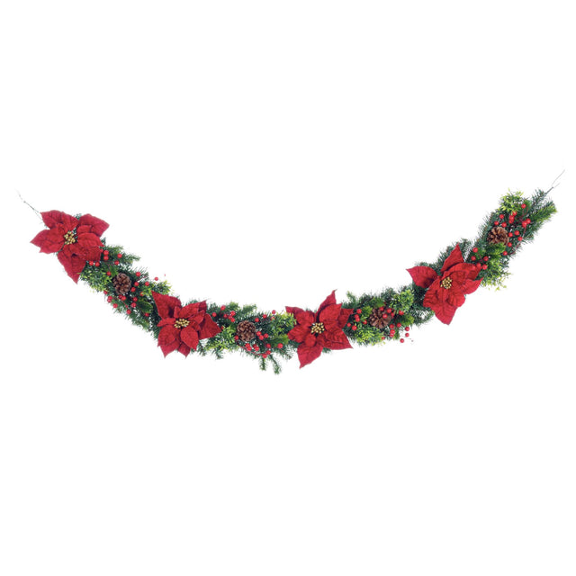 BIZZOTTO Boa Ghirlanda di Natale Classical Poinsettia Rosso Decorazione Natalizia 180 cm PVC