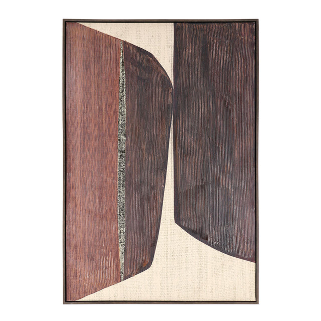 Stampa su tela di Bizzotto con finiture fatte a mano e con applicazioni di fogli dorati, con raffigurazione astratta dai toni marroni e struttura in legno di pino. Il design moderno rendono il quadro di Bizzotto ideale per ogni tipologia di arredamento.