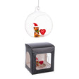 Grazioso addobbo di Natale in vetro con apertura e all'interno l'orsetto Teddy con un cuore. Questa tenera decorazione è ideale per decorare in modo originale il tuo albero di Natale, i tuoi ambienti durante le festività natalizie o come regalo per la persona amata.