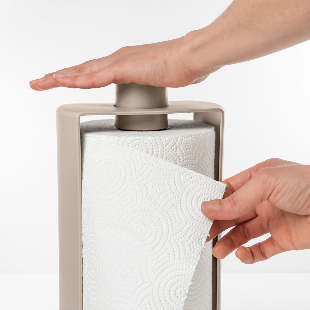 A volte il rotolo si prende delle libertà e fa uscire troppa carta. Non è questo il caso: grazie al pulsante in cima, con la semplice pressione del polso decidi tu quando fermare il moto circolare e strappare il foglio in modo netto e preciso.