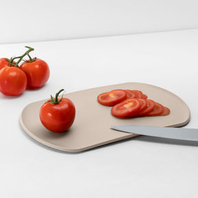 L'evoluzione del tagliere ti farà fare le "evoluzioni": merito di una tavoletta dal bordo ricurvo che oltre a permetterti di sminuzzare comodamente i cibi raccoglie più facilmente i liquidi.