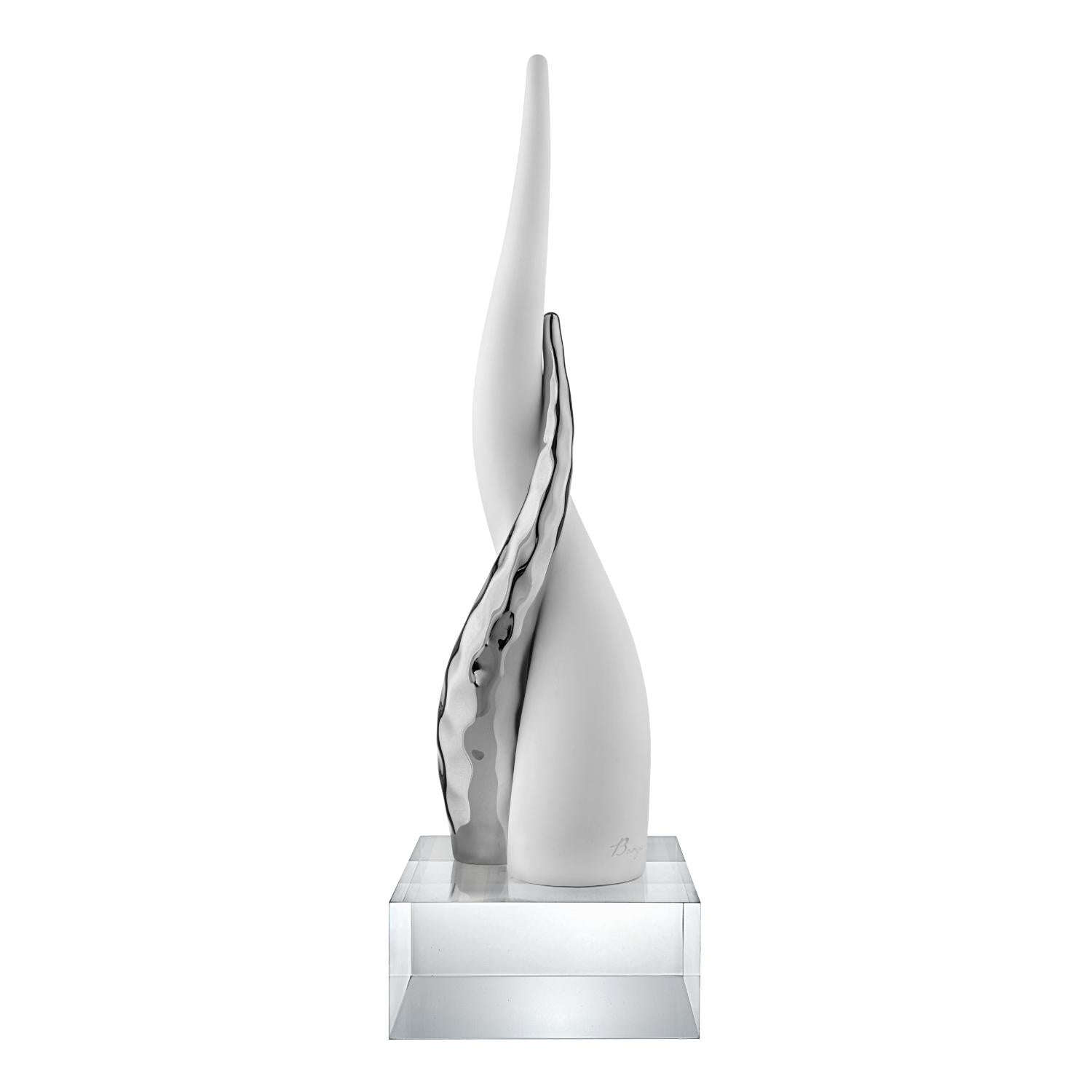 BONGELLI PREZIOSI Cornetto Corni Intrecciati Base Cristallo 20cm Bianco Argento Marmorino