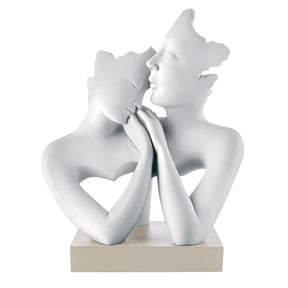 BONGELLI PREZIOSI Figura Statua Moderna Stilizzata Coppia Innamorati 15x11cm Bianco Base Nocciola