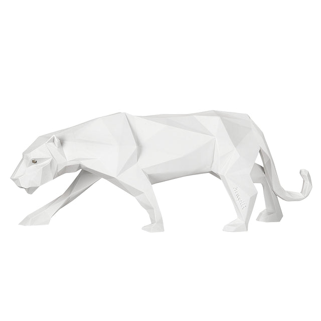 Elegante decorazione di una bellissima pantera stilizzata color bianco . La pantera è in assetto da caccia, il che rende questo complemento d'arredo assolutamente raffinato. Ideale anche come regalo per gli amanti degli animali o per una persona cara.