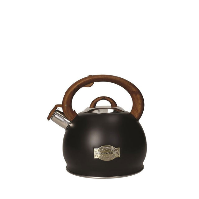 BRANDANI Bollitore in Acciaio Inox Nero 2,7lt con Manico Soft Touch Effetto Legno