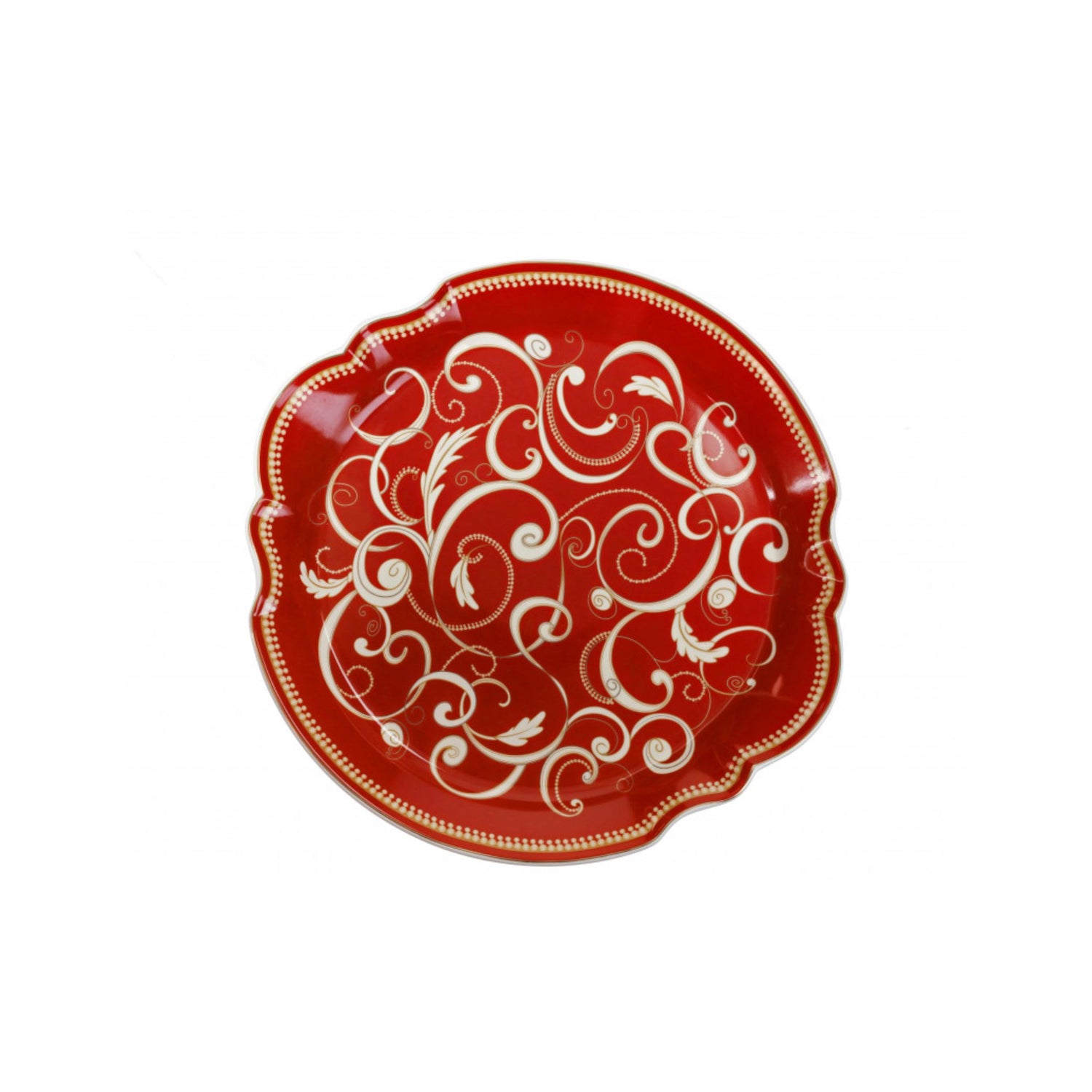 BRANDANI - Filo D'Oro Piatto da Portata Rosso Natale Porcellana Tavola Natalizia 52710