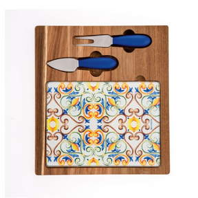 BRANDANI Medicea Tagliere in Legno Acacia Vetro con 2 Coltelli in Acciaio