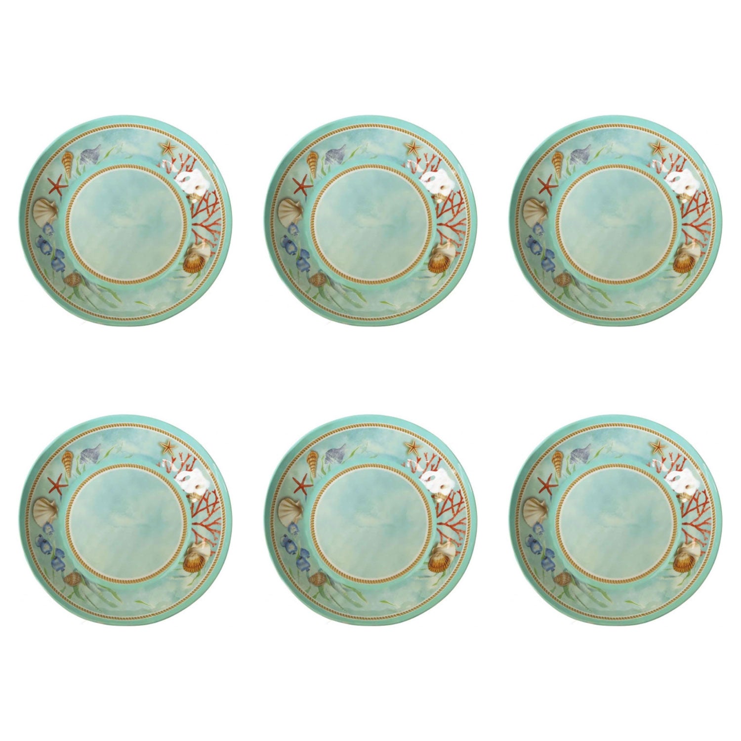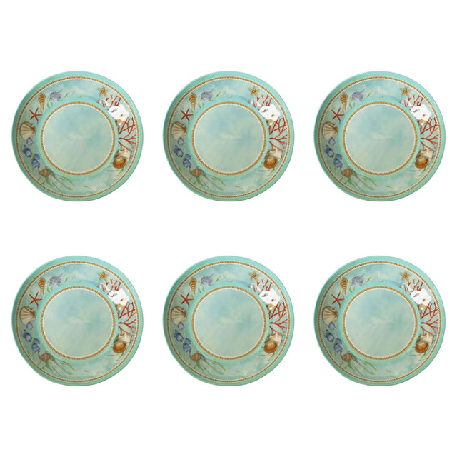 BRANDANI Piatto Fondo Marino Reef Set 6 Pezzi 21cm Melamina Celeste