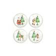 Il set Piattino Pane & Pastry Racconti di Brandani è composto da quattro piattini in porcellana (Ø 15 cm) decorati con i simboli e i personaggi del Natale: renne, pupazzi di neve, orsetti, abeti e Santa Claus, su uno sfondo dai toni tradizionali verde e rosso.