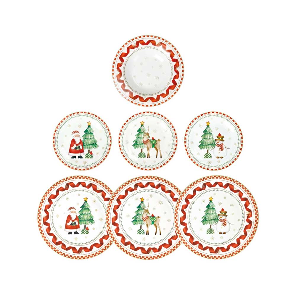 BRANDANI Racconti Servizio Tavola Piatti Natalizi Set 18 Pezzi Porcellana