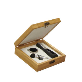 BRANDANI Set Degustazione Vino 3 Pezzi Confezione 16,5x14,5cm in Bamboo