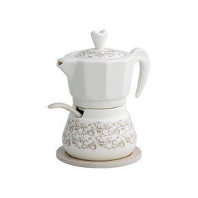 Una collezione leggiadra e delicata, quella ideata da Brandani per impreziosire la tua tavola ed i tuoi momenti speciali. La linea Riccioli di Fata si compone di oggetti non solo pratici da utilizzare, ma anche perfetti da esporre grazie alla loro raffinatezza. La zuccherina, ad esempio, è un piacevole connubio tra leleganza della porcellana di cui si compone e lenergia del bamboo che le fa da supporto. A forma di piccola caffettiera, con avvenenti decori floreali e cucchiaino abbinato, la zuccherina Riccioli di Fata è davvero un accessorio dalle molteplici sfaccettature: modernità, grazia e tradizione. Splendida da regalare, ideale come bomboniera, perfetta per te!