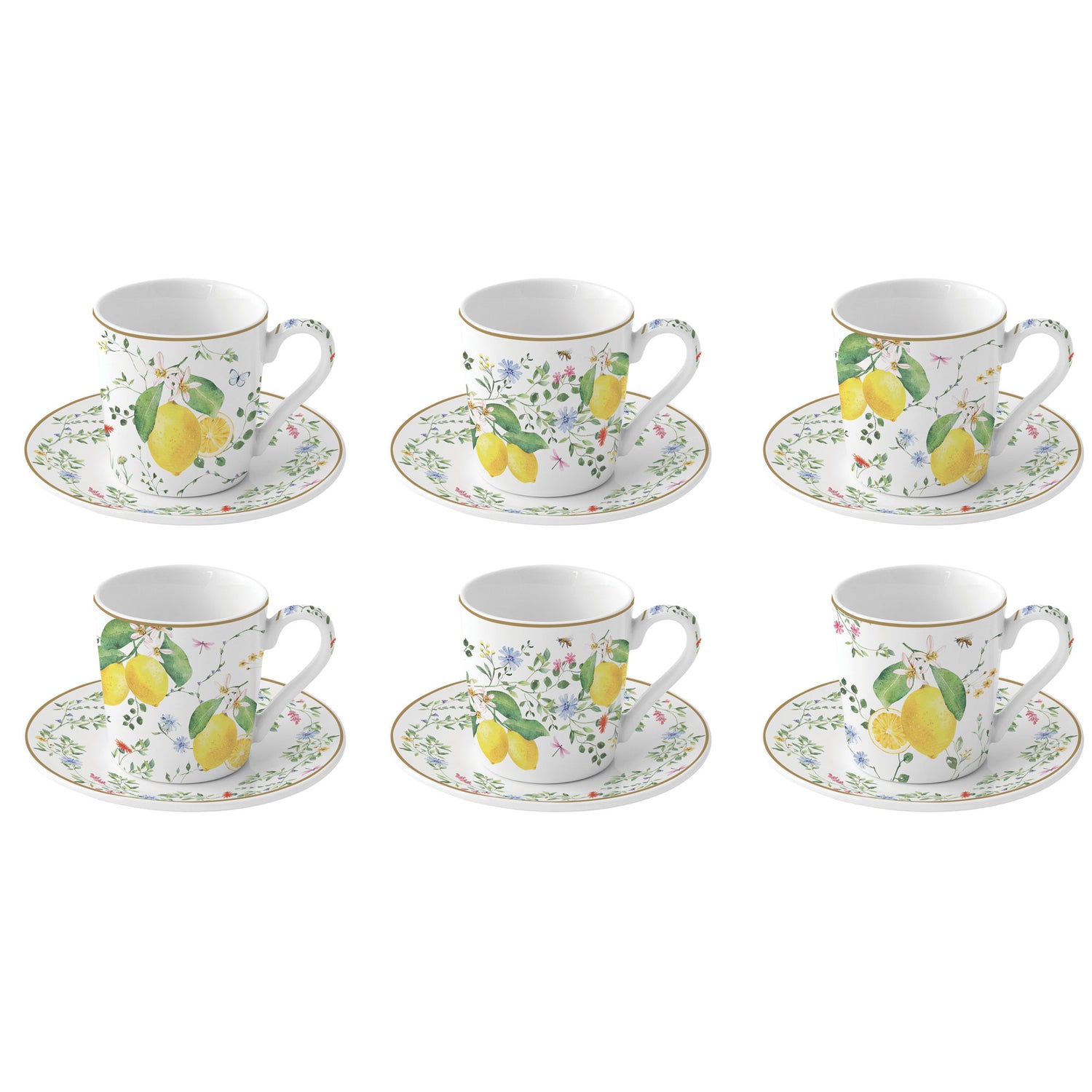 EASY LIFE Fleurs et Citrons Set 6 Tazzine Espresso con Piattini 100ml Porcellana