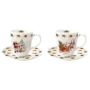 EASY LIFE Nostaligc Christmas Set 2 Tazzine Caffè 110ml con Piattino Porcellana Tavola di Natale